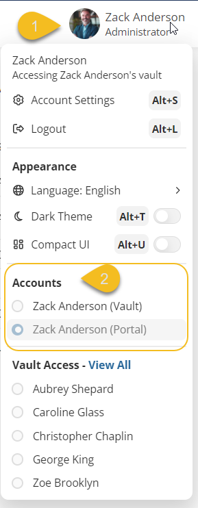 You can switch between your Vault view and Portal view without logging out.